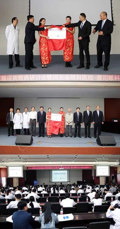 4月25日,我院举办了国家级继续教育项目--糖尿病眼病学术研讨会,同时,蔡司眼科医生培训基地在我院 正式揭牌。我院院长张铭连,卡尔蔡司公司市场部总监杨幕龙分别致辞并为培训基地揭牌。张铭连在致辞中指出,长期以来,我院始终坚持“科技强院”、“开放办院”的理念,不断加强与国内外眼科界的学术交流和合作,积极推进眼科学术方面的发展与繁荣。近年来,我院先后主办和承办国际、国家和省级眼科学术会议,以及国家级继续医学教育项目30多次。特别是在14-20次全国眼科学术会交流论文数量连续7年在全国眼科机构中名列前三,进一步提升了医院的综合实力和学术影响力。河北省眼科医院-蔡司眼科医生培训基地的成功揭牌,是蔡司公司在我省合作建立的首家公益性眼科医师培训中心,标志着我院和蔡司公司强强联合又上升到一个新的高度,必将成功搭建起河北省眼科临床医师培训的新平台,将更好地服务于眼科新技术的推广,为河北省乃至全国眼科事业发展做出新的更大的贡献。