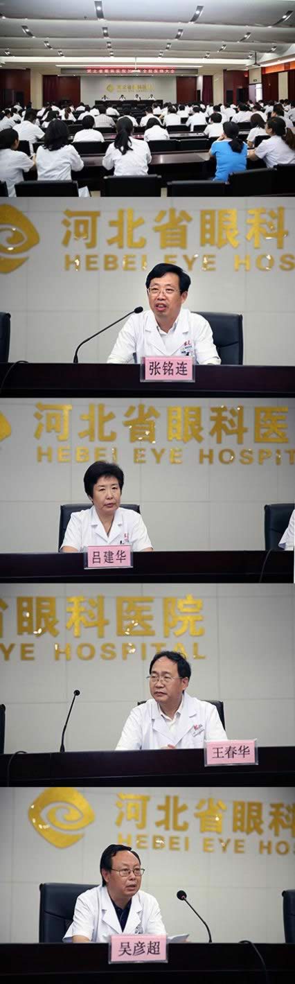7月24日下午,为深入开展“三严三实”专题教育和“三比一争”活动,进一步营造“风清气正,干事创业”的良好氛围,我院在综合楼学术报告厅隆重召开全院医师大会,吹响了“创建三甲”的冲锋号,眼、口腔、耳鼻喉、医技、药剂等科室共150多名医生参会。院长、党委书记张铭连,副院长吕建华、王春华、吴彦超等出席会议,党委书记、院长张铭连主持会议并讲话。会上,副院长吕建华、王春华、吴彦超分别就2015上半年分管的科研教学、药品使用、医疗质量与安全等主要工作进行了总结回顾,并对下半年的主要工作进行了安排布置。吕建华副院长还通报了我院在第20届全国眼科大会上取得的优异成绩,使全院医师倍受鼓舞。