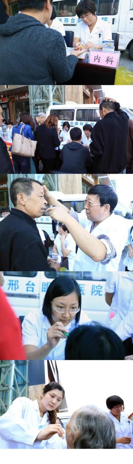 金秋时节,丹桂飘香。当日上午9时,在市桥东区世贸天街天型城市综合体B区,我院眼科、耳鼻喉科、口腔科、内科医生一行5人,利用手中的便携式检查器械,有条不紊的为逛街或过往的市民进行着细致的检查……。72岁的李老太近段时间看东西模糊,经查,患有老年性白内障,需住院手术治疗。带着孩子逛街的刘女士将8岁的儿子叫到口腔科医生前,说:“从昨天开始,孩子说他牙痛,我们以为孩子喝水少,上火的原因,也没在意,逛街时听说你们在这里义诊,就过来让医生给孩子看看”。经查,孩子有两颗牙齿患有龋齿,需到医院进行龋齿治疗。“李阿姨,您的血压有点偏高,以后还是要多吃蔬菜、多喝水,保持好心情,还要按时吃降压药。”内科主任付世为76岁的张老太测量血压,并耐心地讲解应对办法,提出合理建议。