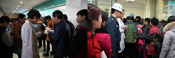春节前,学生刚一放假,我院就诊高峰如期而至。腊月二十四,我院门诊、急诊就诊人数高达两千多人次,创同期历史新高。每天,都能看到收费处、药房、小儿眼科、眼门诊、验光配镜部、眼特检科、放射科、化验室等处,排着“长龙”,直到上午11点,人流还没有消减的迹象,门口络绎不绝地涌进急匆匆来挂号的人们。针对就诊人数激增,医院在正月初六上班第一天(正月初六),就按照节前应对就诊高峰期预案,从病房调来医生,充实到小儿眼科门诊、安排临时保障人员,到就诊人次最多的眼门诊和小儿斜视与眼肌门诊对患者进行帮助就医,最大程度上缩短患者排队的时间。“为了保证患者能及时看上病、看完病,我们提前上班来到诊室,做好应诊前的一切准备工作,取消中午休息时间和下午按时下班时间,直到患者看完病为止……。为了让患者都能看上病,连水都不敢喝,怕上厕所耽误看病时间。”业务副院长、主任医师、小儿眼科学术带头人韩惠芳说。
