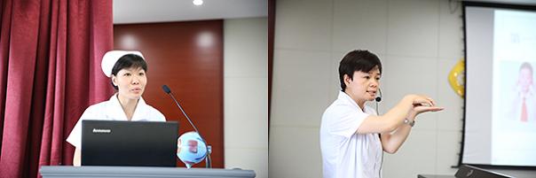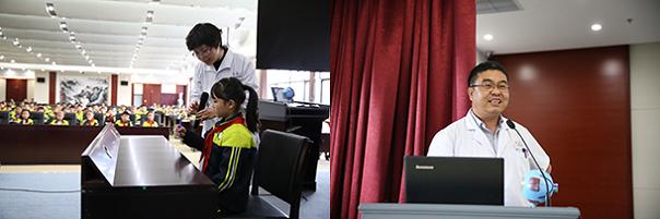 在综合保障楼五楼学术报告厅,门诊部副主任高志英、斜视与小儿眼科副主任孙卫峰、眼外伤科护师屈伟玲、视光学科医师杨宏宇,分别以“认识我们的眼睛”,“近视的预防”,“发生了斜视、弱视怎么办”,“别让眼睛受外伤”,“眼保健操”等为题,为同学们送上了爱眼护眼知识。他们利用PPT和眼模型,组合自己多年的教学、临床治疗、护理经验,形象生动地讲解了眼睛是如何近视的、如何预防近视、什么叫斜视、弱视,斜视、弱视是如何发生的、得了斜视、弱视如何治疗,如何保护眼睛免受外伤,发生眼外伤之后怎么办等和同学们眼健康息息相关的知识,不时赢得热烈掌声。课堂上还进行了有奖知识竞答,同学们争先恐后举手做答,表示对学习内容的了解与掌握。