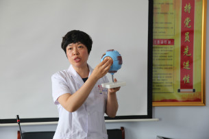 在小桃花村村委会内,我院门诊部主任高志英和内科主任付世新分别通过多媒体PPT、模型教具,结合丰富的临床知识,为到场聆听讲座的村民们详细讲解了有关“走进白内障”、“糖尿病也能馋嘴”相关知识,在讲解中结合模型教具耐心解答村民们提出的问题,并着重讲解了生活中有关用眼、饮食、生活习惯等方面的知识,告诉大家在什么情况下要去医院就医,更重要的是在日常生活中如何做到防病于未然。在讲座后,我院知名眼科专家宁俊恩主任医师、付世新主任医师现场为村民进行了眼科、内科检查,同时免费为村民测量血压、血糖,并免费提供了滴眼液。此次活动还发放了白内障、糖尿病等健康宣教资料150余份。小桃花村村党支部书记马献军对医护人员表示了欢迎和感谢,他说,此次巡讲及义诊活动很有意义,使广大村民享受到了一次亲近身边的疾病检查及学习预防保健知识的机会,受到村民的热烈欢迎和好评,对引导村民转变生活观念,具有很高的指导意义。