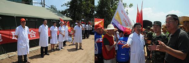 7月26日上午,我院志愿者在张铭连院长带领下,赴洪灾重灾区东汪镇大贤村慰问连续奋战在一线的武警部队官兵。