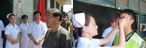 医务人员在现场将慰问品交给了我们最可敬的人,并为因劳累和汗水浸渍造成眼部不适的官兵检查了眼睛,发放了眼药水等药品。在大贤村指导抗洪工作的市委书记张古江问候了我院医务人员,同时指出,大水无情,人有情,医务人员一定要做好灾后的卫生防疫工作,尤其要注意做好灾区群众的心理疏导工作,还要为灾区救助工作保驾护航。