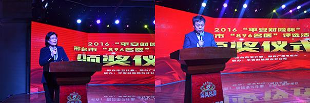 2016 年11月18日,由邢台市卫计委和邢台广播电视台举办的“平安财险杯”第二届听众最喜爱的名医评选活动颁奖活动,市卫计委党组副书记、副主任付素霞出席并讲话。我院董梅书记和六位获奖名医出席本次颁奖活动。