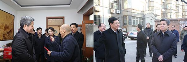 1月20日,在鸡年新春佳节即将到来之际,市长董晓宇,市委宣传部部长王荣丽等领导,在我院院长、党委书记张铭连,党委副书记杨继范,工会主席李新华以及老干部科同志的陪同下,亲切走访慰问了我院离休老干部、老红军崔德元,并送上了新春祝福和慰问品、慰问金。