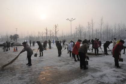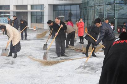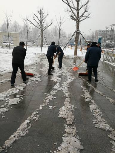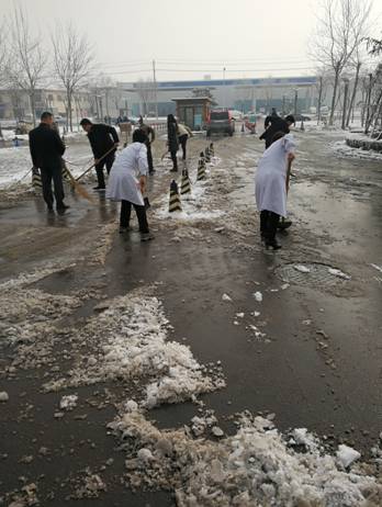 2月21日,一场迟到的春雪,邢襄大地银装素裹。为给患者提供一个干净、优质的就诊环境,22日早晨8点,院领导、行政、后勤科室职工组成的清雪队伍,奋战在院区各处。