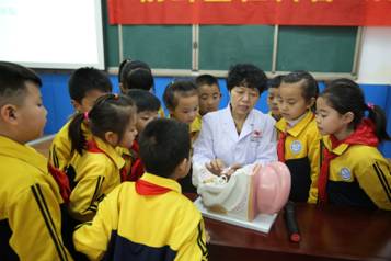 刘江月副主任为龙泉小学的学生们讲解耳朵的结构
