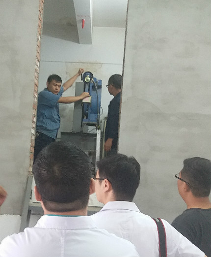 当日下午16:00演练正式开始。住院部三部电梯厅8号电梯由于“人为”故障停滞在5--6层之间,有1名患者和一名电梯司机被困在轿厢内,急需救援。