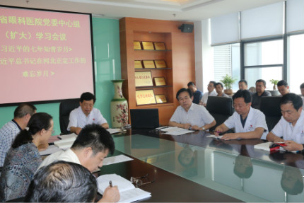 9月23日上午,在河北省眼科医院门诊四楼会议室召开了河北省眼科医院党委中心组(扩大)会,专题学习中共中央党校出版社出版的系列采访实录《习近平的七年知青岁月》和河北日报刊发的《习近平总书记在河北正定工作的难忘岁月》系列报道,医院党委领导班子全体成员,各支部书记、职能科室负责人及部分党员代表一起学习了《习近平的七年知青岁月》和《习近平总书记在河北正定工作的难忘岁月》部分内容。