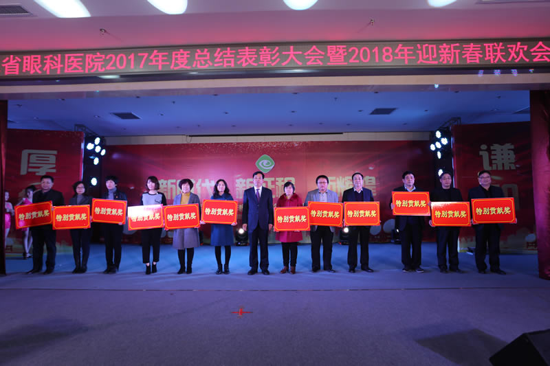 欢声笑语中,应邀出席表彰会的副市长邓素雪,市卫计委主任、党组书记安建波登台,为年度十佳标兵(陈志敏、李东振、韩爱军、常永业、王立芳、李彦、赵翠联、李军、王晓冰、王秋红)颁发了荣誉证书。医院领导班子成员先后颁发了优秀科室奖(党政办、医务科、财务科、科教科、质量控制科、白内障科、口腔颌面外科一病区、斜视与小儿眼科、激光近视矫正二科、视光医学一科、激光近视矫正一科、医学检验科)、特别贡献奖(眼底外科、眼整形与泪器病科、耳鼻喉科、糖尿病眼病科、角膜病科、眼外伤科、青光眼科、激光近视矫正一科、眼科门诊、眼底影像检查与激光治疗科、眼特检科、医学影像科)、科技进步奖(王萌萌、周才喜、李桂芳、王志亮、王晓冰、杨赞章、张军红、赵迷英、解世鹏、韩东)、SCI论文奖(韩龙辉 杨国兴)。