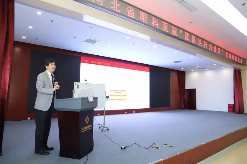 培训开始前,陈实教授参观了我院院史陈列室,认真听取了医院的百年发展历史和基本情况简介,对医院的发展和取得成绩给予了高度评价。培训大会由副院长王莉菲主持,她代表医院对陈实教授莅临河北省眼科医院授课培训表示热烈欢迎,并对专家基本情况和本次培训课程设置进行了简要介绍。培训共进行了六个小时,陈实教授以“管理创新与组织效率——团队执行力提升”为题,以其渊博的知识、结合医院实际工作,从管理学的基本概念到实际工作应用,主题鲜明地对新时代医务人员思想素质与执行力提升进行了深入浅出的讲解,陈实教授幽默犀利的语言,精彩的教学案例,还有不时自嘲的趣事,把深奥的理论,以一个个风趣、另人深思的幽默故事讲解地通俗、耐人寻味,现场不时爆发热烈的掌声和会心的微笑。