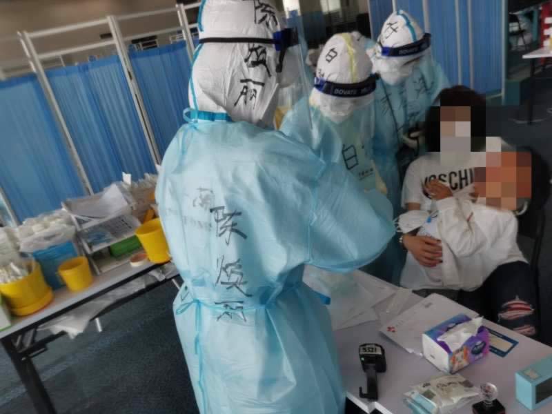 采样工作并非总是一帆顺利,也会碰到不配合的小朋友,晕血、低血糖的成年旅客,但为了守护好我们祖国的大门,想办法排除万难就是我们的工作职责。还记得自己采样的一个小朋友,由于害怕极度不能配合,我们和孩子的妈妈交替安抚了孩子20分钟后,才在4个医务人员的配合下采了口咽试子。还记得7月19日那天出任务,一天两个航班,其中有个重点航班采血采拭子忙了3个多小时,一直到晚上22时30分才回到居住地,回到房间顿时觉得自己的双腿因为长时间站立而隐隐抽痛。虽然有的时候有点困难,但是在工作结束后看到自己可以很成功的完成每一项任务而感到自豪。