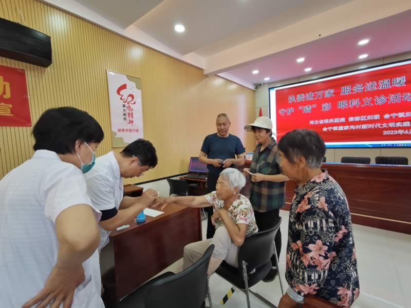 为深入开展“四型机关建设”活动,全心全意为群众提供健康服务,切实提高群众健康水平和幸福指数,助力太行泉城、美丽邢台建设。6月16日,河北省眼科医院妇委会主任、眼科专家门诊主任赵迷英组织带领原业务副院长吕建华、医务科科长穆瑞娟、质控科主任李志华等专家团队赴会宁镇董家沟村开展“心系百姓 防盲剔苦”义诊活动。