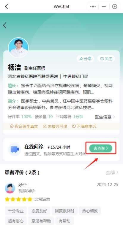 1、微信搜索“河北省眼科医院”官方微信小程序;