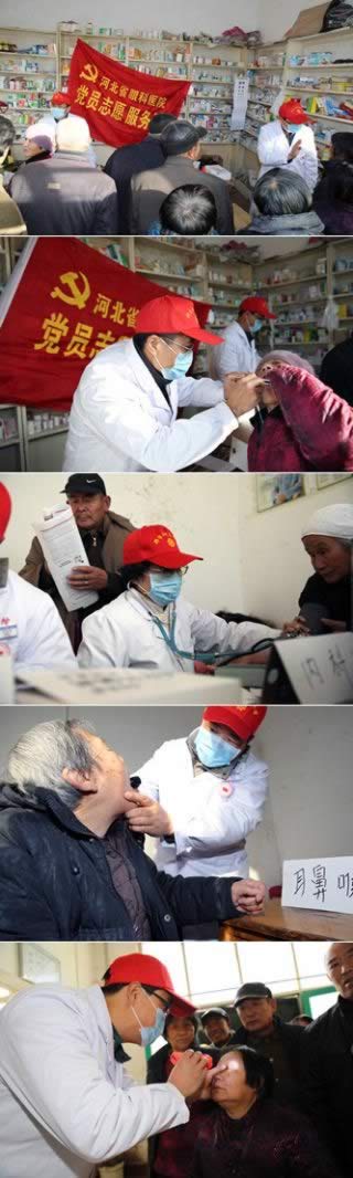 我院在不断巩固和拓展党的群众路线教育实践活动取得成果的基础之上,紧扣“学讲话、转作风、优环境、促发展”的大讨论活动主题,响应市委组织部“党员活动日”要求和号召,结合医院工作实际,于12月5日,由院党委副书记杨继范亲率医院党员志愿者服务队,走进威县章台镇东柏悦村进行健康义诊和宣传活动。当我院专家到达义诊活动现场时,这里已聚集了不少前来看病的乡亲。我院的医生抓紧时间摆放好为乡亲们准备的医院自制药品和便携式检查器械后,便投入到了紧张的诊疗之中。在义诊现场。70多岁的朱大爷近段时间看东西愈来愈模糊,前来看诊,经眼科医生张印博检查,被确诊为患了老年性白内障,需手术治疗。村民李大爷,对耳鼻咽喉科韩振强医生的检查、解答非常满意,乐呵呵的说:“今天听说眼科医院的医生上门服务,就来看看耳朵,即不用出村,又不用挂号、排队,就能够享受到医院好医生的服务,真的很方便,太谢谢你们啦……。65岁的赵大爷说,“我都这个年纪了,哪有不掉牙的,刚掉了两颗牙,也没感觉咋难受,等没法吃饭了再治吧。”口腔正畸科副主任张超诊断后告诉他,“老掉牙”的观念是错误的,牙齿缺失要及时镶补,否则缺牙会导致咀嚼功能减退,影响消化功能,此外,还易嵌塞食物,引起龋齿及各种牙周疾病。在内科主任李淑新的就诊桌前,前来看诊的老人络绎不绝,测血压、问诊、听诊,不时的回答着各种健康咨询。